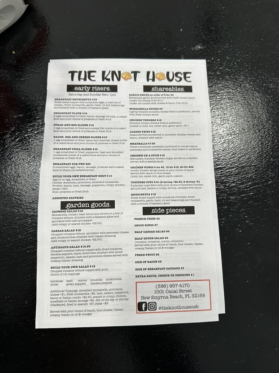 With customer reviews highlighting exceptional service and vibrant outdoor seating, The Knot House is not just a meal—it's an experience waiting to be savored.